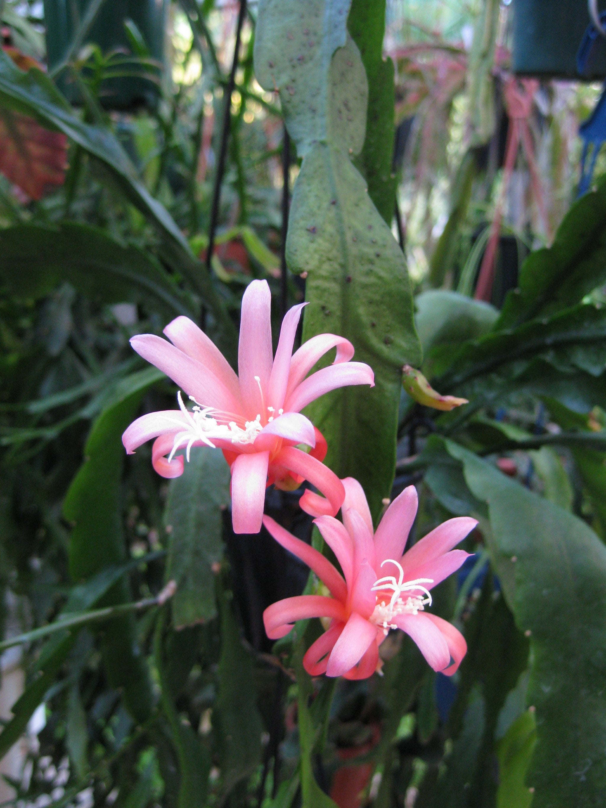 Epiphyllum are epiphytic cacti as their name suggests. Some call them orchid cactus due to their large bright blooms and growth habit. Epiphytic plants grow on other plants, not in a parasitic fashion but as hosts. They are not cold hardy and generally can be found only as houseplants or greenhouse specimens.
